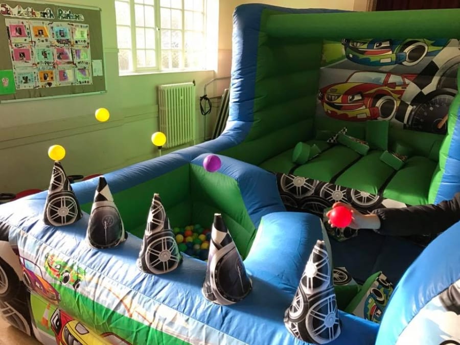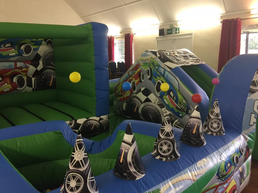Enclosed and perfect for indoor or outdoor hire this play park includes the following: a fantastic transport theme, a Small Bouncy Castle, a Ball Pond with balls, Air Jugglers, an Up and Over Slide and a small soft play set. Fantastic for a cars themed party or any kind of racing game! Most suitable for younger children.
