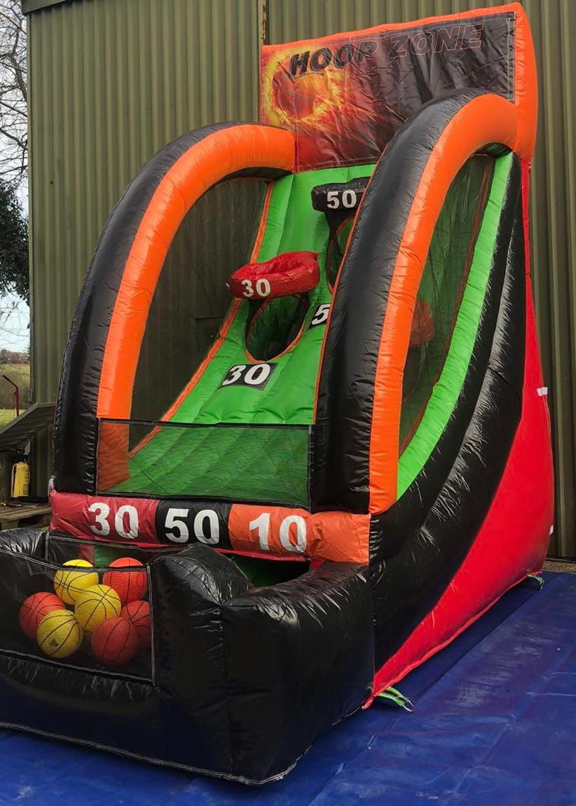 It is a great addition to any party, fun day or event. This Inflatable is brightly coloured and is approximately 15ft high. It has 3 baskets each with a different score 50, 30 and 10. This Inflatable Basketball Game comes with 3 basketballs.