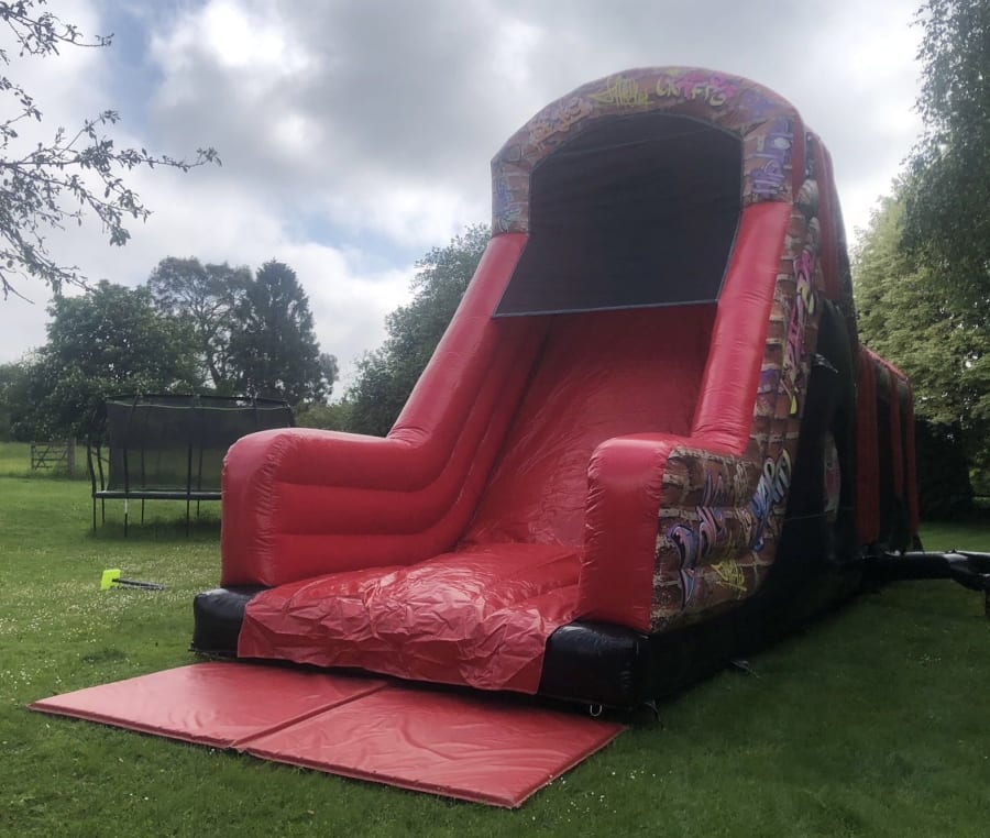 Our Graffiti 10ft Drop slide Fun Run is the perfect street art attraction for any occasion! With over 40ft of action in this super fun Obstacle Course its the perfect choice for any artsy party. Perfect for indoor or outdoor hire and available now!