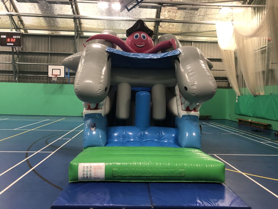 This energetic adrenaline packed assault course comes equipped for any kind of celebration. Decorated with two large inflatable sharks and a purple splashy octopus! If your child loves sharks or sea life this is definitely a must have!