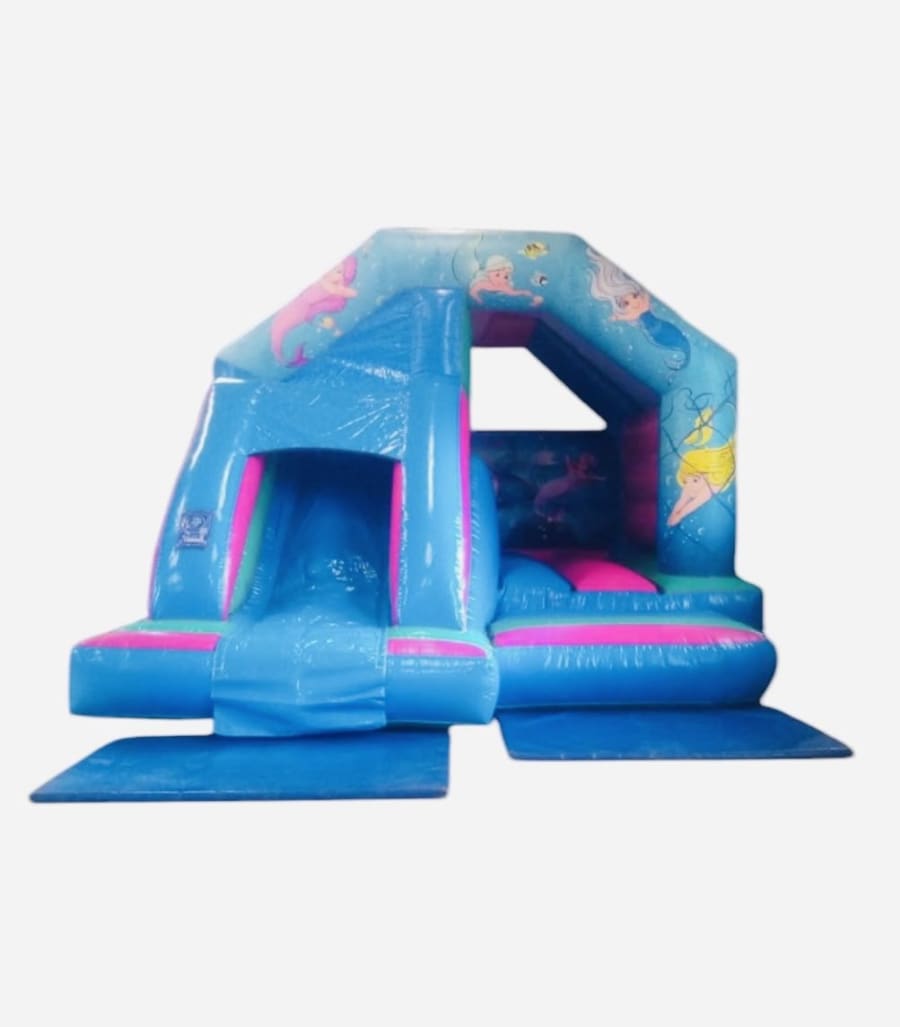 Why not Splash out and book our wonderful Mermaid Front Slide Bouncy Castle to give the little ones a party to remember? This Mermaid themed castle displays a host of mermaids and marine friends, including an assortment of fish. This Mermaid themed Bouncy Castle will be the focal point of any party, providing hours of entertainment.