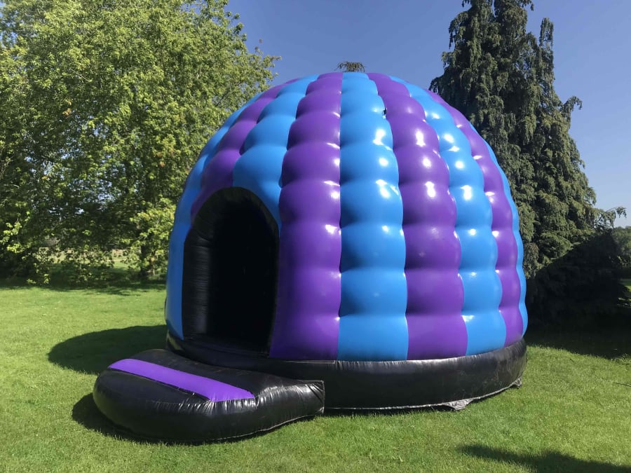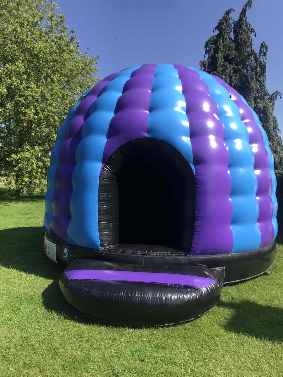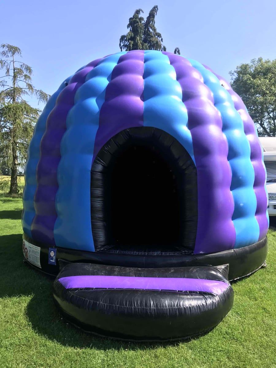 This disco dome displays a pop of colour with its striking blue and purple stripes! Our enclosed castles are most popular with young teenagers. However all ages are bound to enjoy this dome and included speaker which has an AUX lead/ Bluetooth system and can be used by mobile phones, tablets and iPad's. BOOK TODAY!