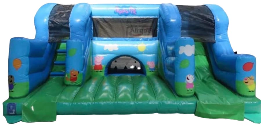 This Playpark features vibrant images of Peppa and would be the focal point of any Peppa Pig themed party. This wonderful Playpark comes complete with a bounce area, ball pool with air jugglers and steps with a slide! A good idea for younger children that cant use a average sized bouncy castle.