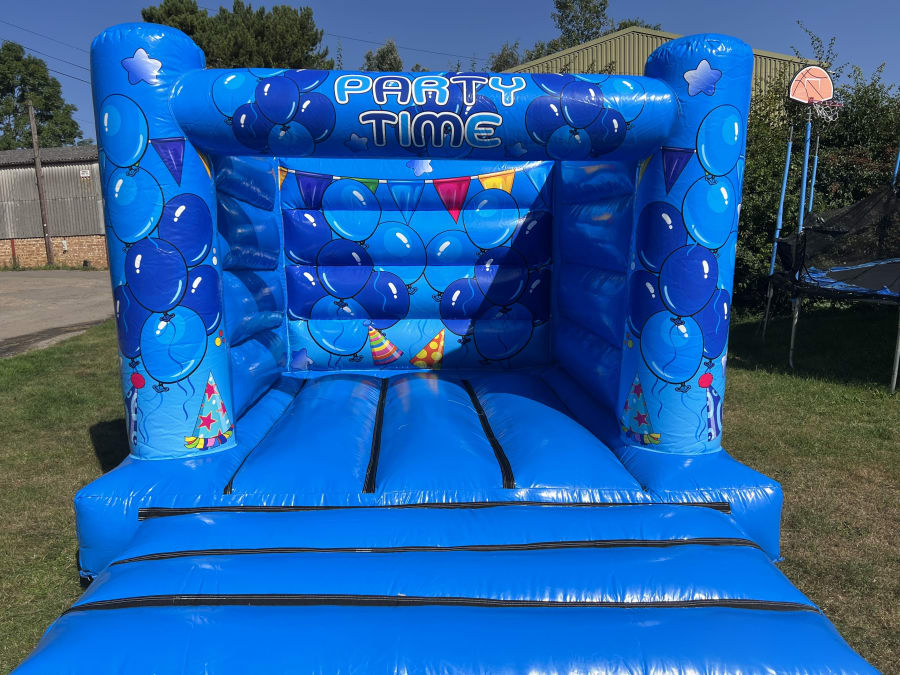 This neutral boys bouncy castle is suitable for any kind of celebration what with its balloon pattern and colourful streamers/party hats! Its also available in pink for preference!