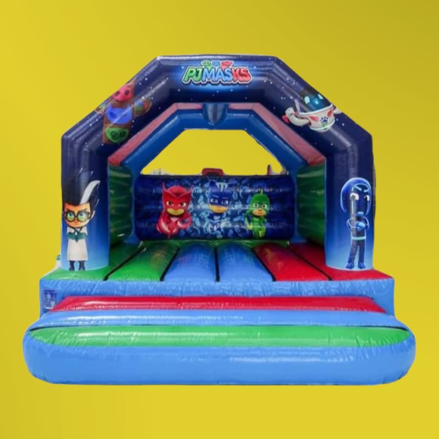 Does your child wish to have a PJ masks themed party? Lucky for you our blue, green and red party castle is up for hiring. The main 3 are on the inside and the super villains are decorating the outside topped off with our space pattern decorating the exterior. (suitable for children only) book now!!