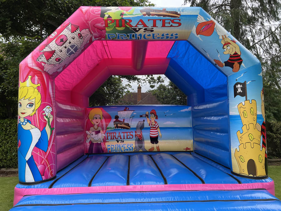 struggling to settle on a theme for your party? This clash of pirates and princesses is great for boys and girls due to it being a perfect mix of blue and pink. Detailed designs such as castles and pirate flags makes for the perfect bouncy castle for shared birthdays or joint parties.